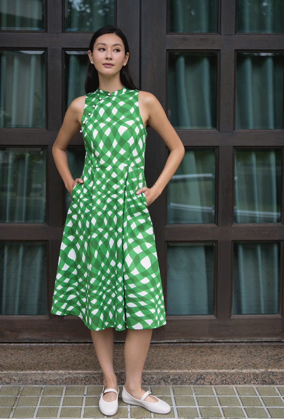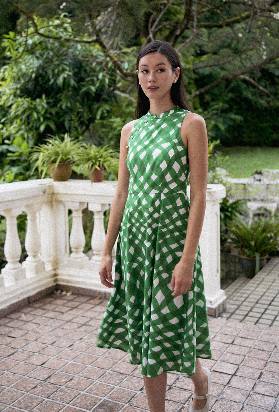 Tea Party Cotton Cheongsam in Sun-Kissed Green