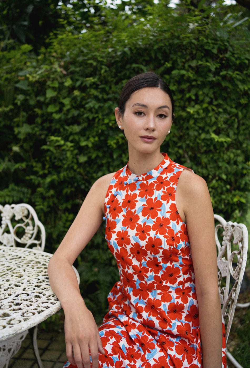 Brighter than Sunshine Cotton Cheongsam in Hibiscus Crush