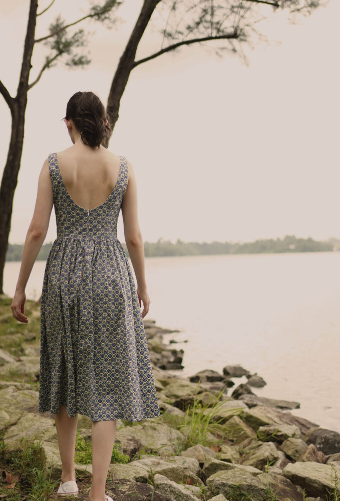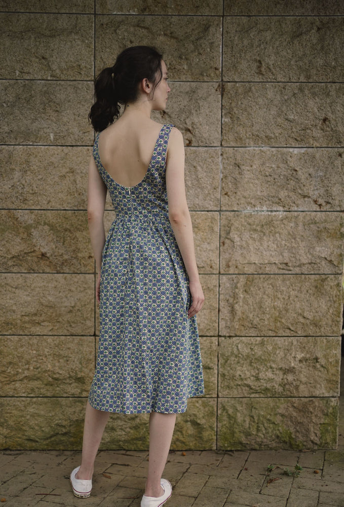 The perfect staple for your summer wardrobe. Another classic dress we love that comes in vintage-inspired prints. Comes in a flattering square neckline and an A-line skirt that enhances the waist with side zip closure. Made with 100% lightweight cotton and comes with side pockets. Garment is fully lined in 100% cotton. Designed for a slim fit at bust and waist, loose from the waist down and in midi length. Dresses perfectly with your favorite flats or sandals.