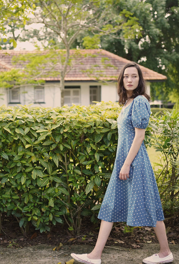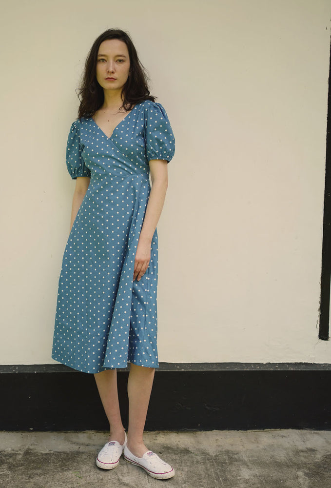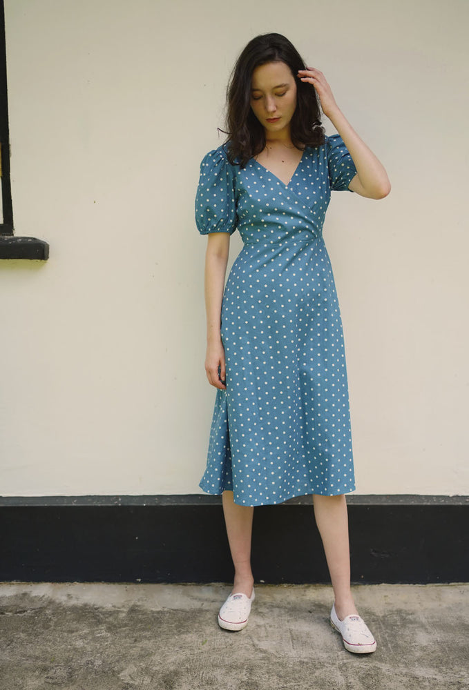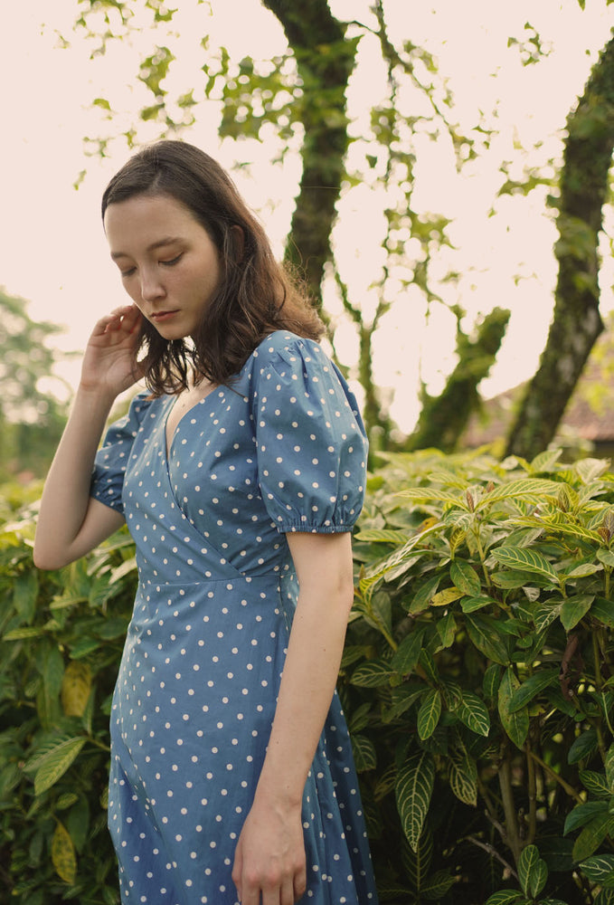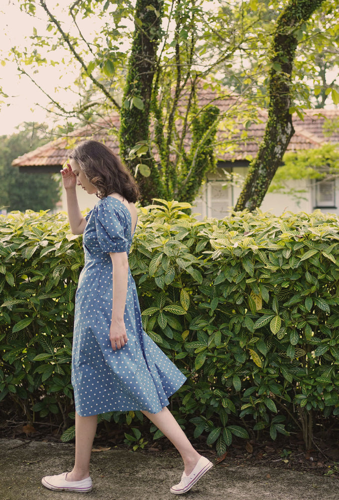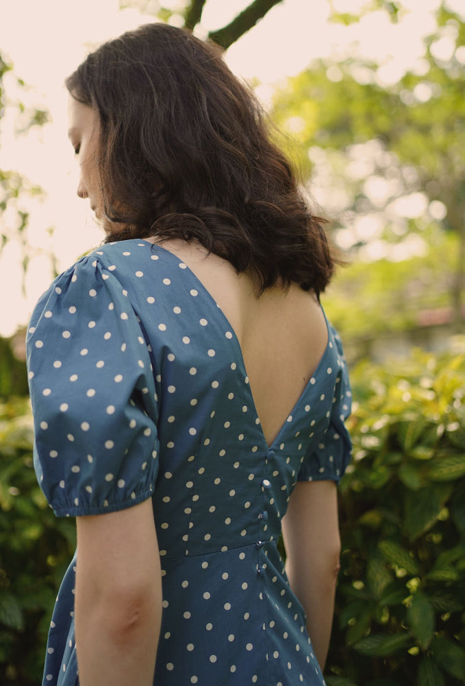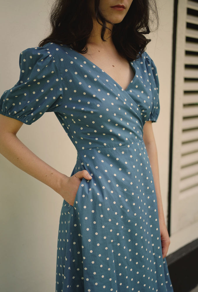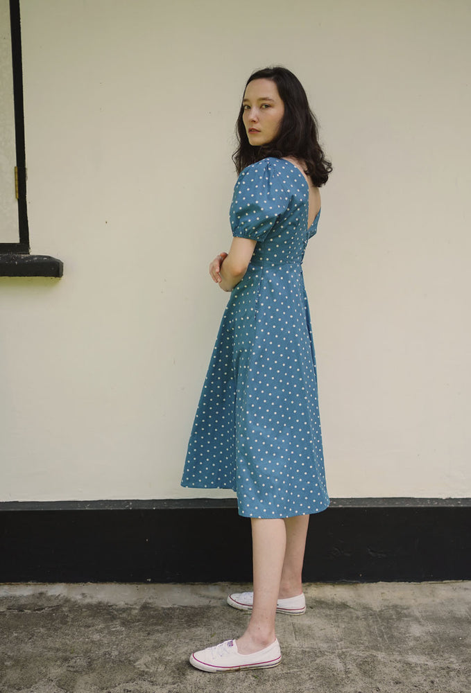 Dessert Over Tea II Cotton Dress in Dotted Blue