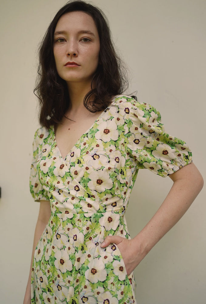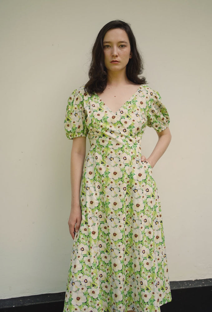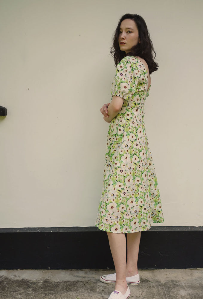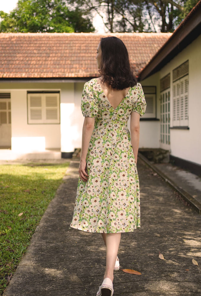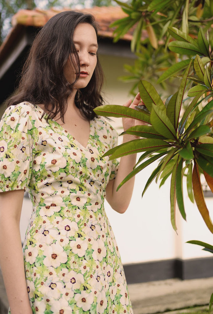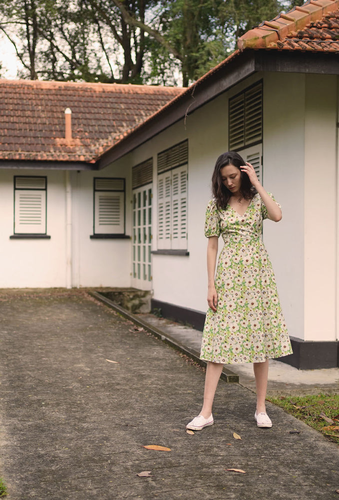 Dessert Over Tea II Cotton Dress in Bustling Greens