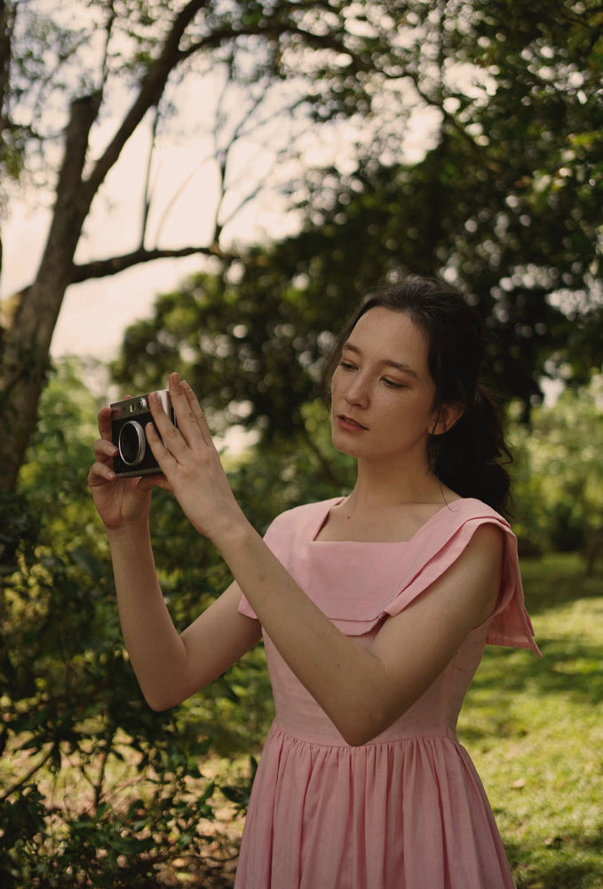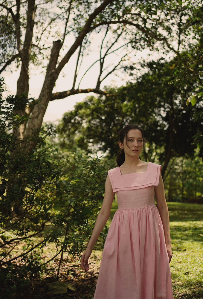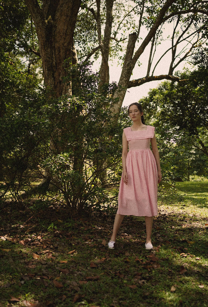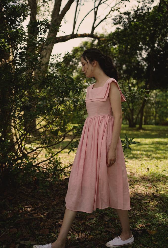 Regular price RM343.00 MYRInspired by a 1940s dress pattern with a square neck sailor collar - imagine putting this charming piece on for weekend lunches at Grandma’s. Comes with a flattering A-line skirt that enhances the waist and side zip closure. In two beautiful colors – pink and dark cyan. Made with linen cotton blend fabric and comes with side pockets. Garment is fully lined in 100% cotton. Designed for a slim fit at bust, slightly loose from the waist down and in midi length. Dresses perfectly with your favorite flats.