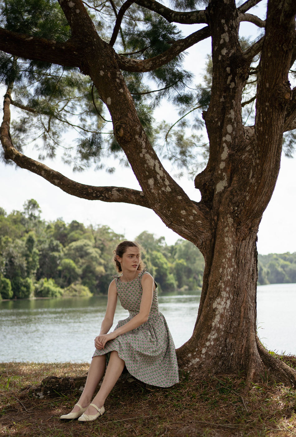 Wandering Through Time Cotton Dress in Vintage Romance